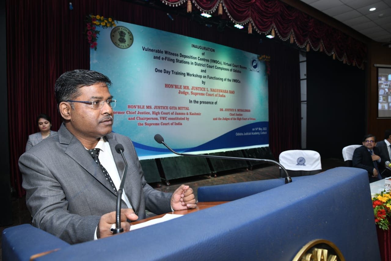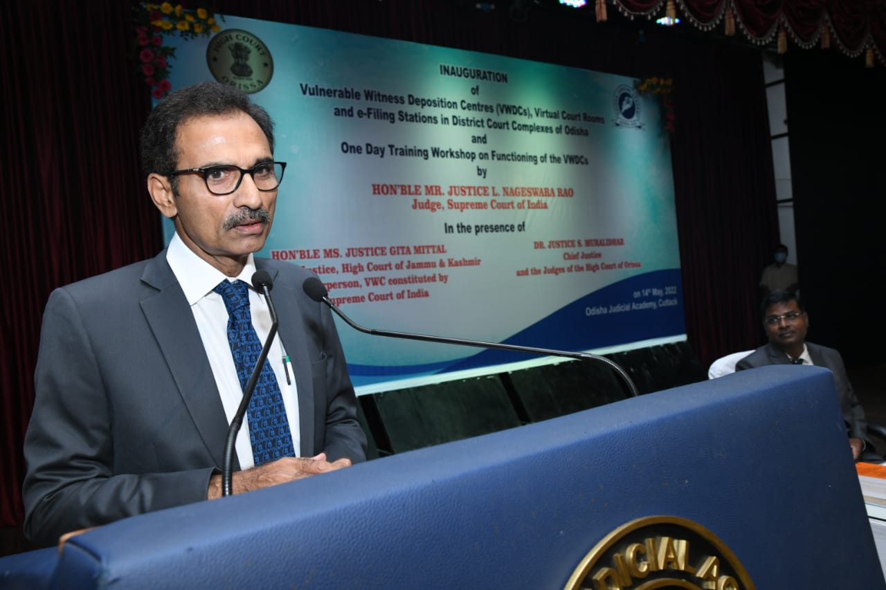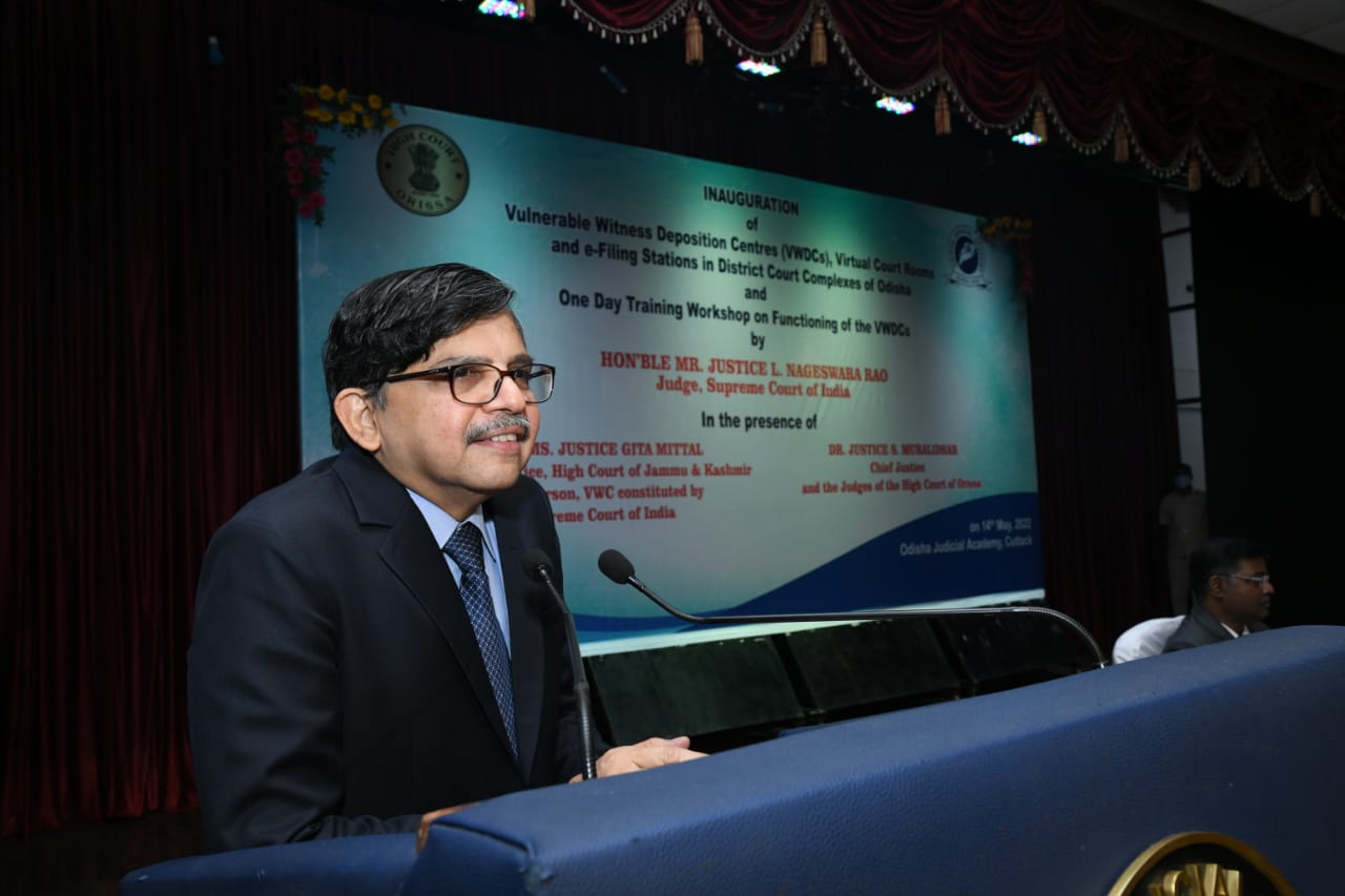 | 14.05.2022 - Hon'ble Mr. Justice L. Nageswara Rao, Judge, Supreme Court of India in presence of Dr. Justice S. Muralidhar, Chief Justice, & Hon’ble Judges of High Court of Orissa & Ms. Justice Gita Mittal, former Chief Justice of the Jammu and Kashmir High Court and Chairperson, Vulnerable Witness Committee inaugurated the Vulnerable Witness Deposition Centres and Virtual Courtrooms in District Court Complexes |