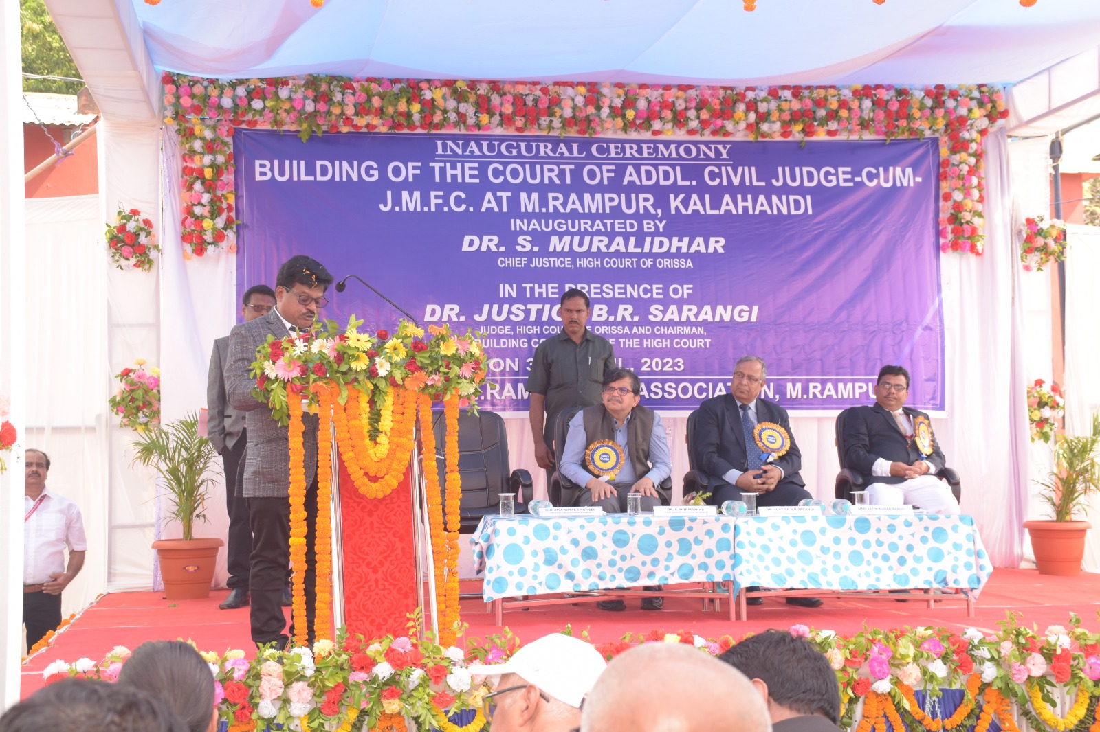 | 30.04.2023 - On 30th April, 2023, Dr. Justice S. Muralidhar, Chief Justice, High Court of Orissa inaugurated the building of the Court of Addl. Civil Judge-cum-J.M.F.C. at M.Rampur in the Judgeship of Kalahandi in the presence of Hon'ble Dr. Justice B.R. Sarangi, Judge, High Court of Orissa & Chairman, Building Committee of the High Court |
