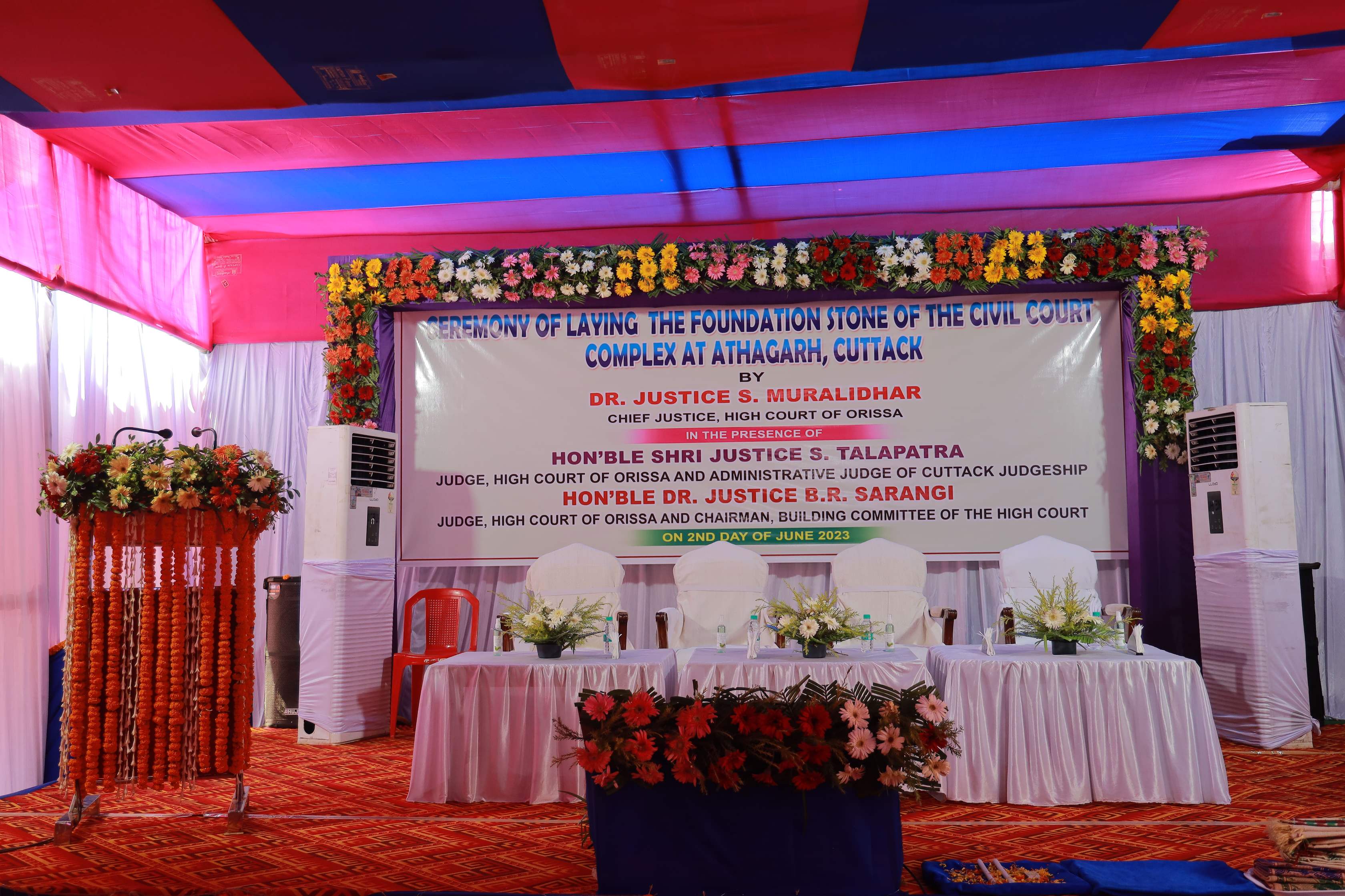 | 02.06.2023 - Foundation Stone Laying Ceremony of the Civil Court Complex at Athagarh in the Judgeship Cuttack by Dr. Justice S. Muralidhar, Chief Justice, High Court of Orissa in the presence of Hon'ble Shri Justice S. Talapatra, Judge, High Court of Orissa & Administrative Judge for Cuttack Judgeship and Hon'ble Dr. Justice B.R. Sarangi, Judge, High Court of Orissa & Chairman, Building Committee of the High Court |