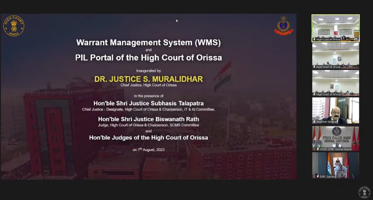 | 07.08.2023 - On 7th August, 2023, Dr. Justice S. Muralidhar, Chief Justice, High Court of Orissa inaugurated the Warrant Management System (WMS) and the PIL Portal of the High Court of Orissa in the presence of Hon’ble Shri Justice S. Talapatra, Chief Justice - Designate and the Companion Judges of the High Court of Orissa |