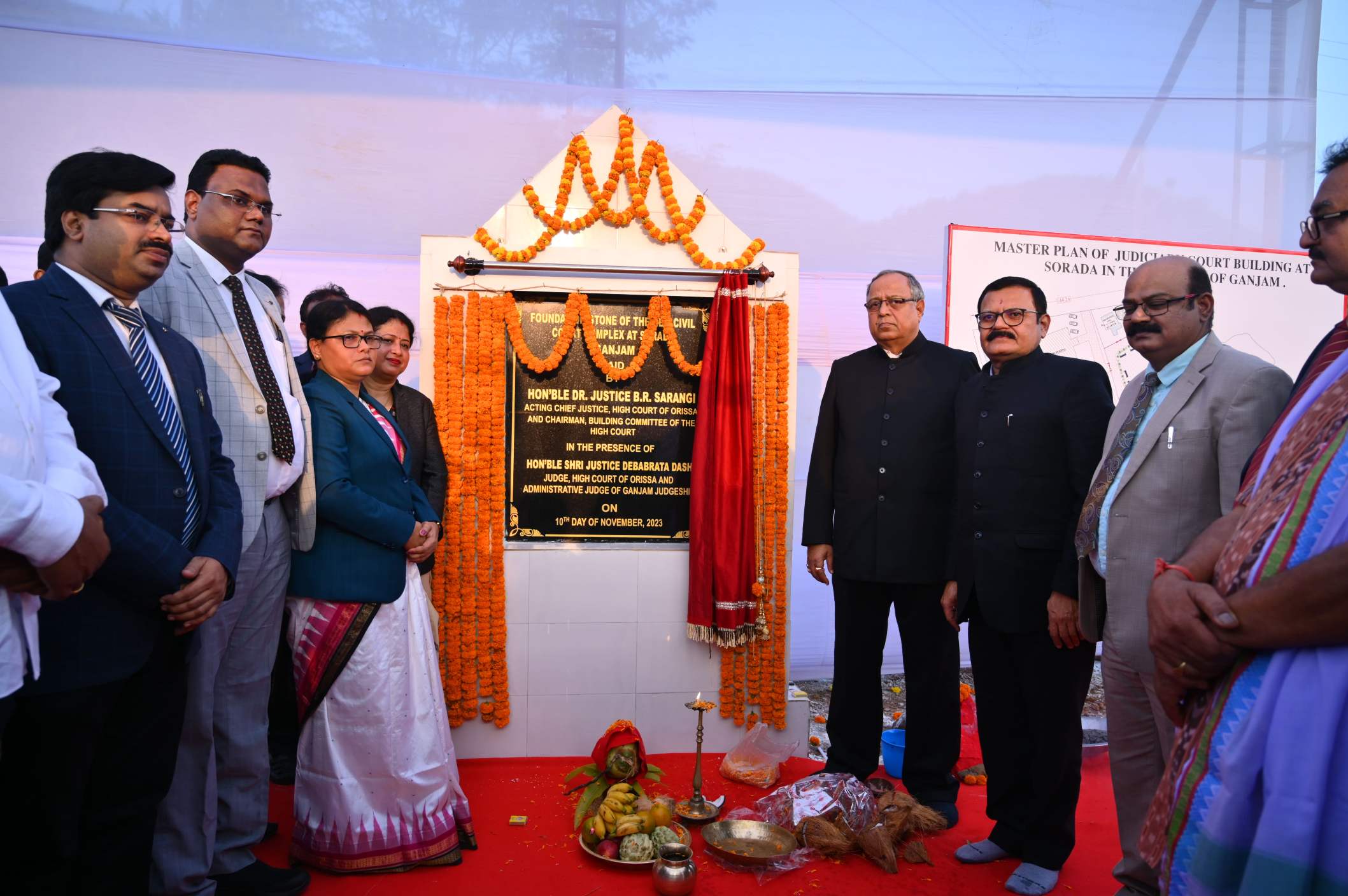 | 10.11.2023 - Foundation stone of the New Civil Court Complex at Sorada, Ganjam laid by Hon’ble Dr. Justice B.R. Sarangi, Acting Chief Justice, High Court of Orissa and Chairman, Building Committee of the High Court in presence of Hon’ble Shri Justice Debabrata Dash, Judge, High Court of Orissa and Administrative Judge of Ganjam Judgeship |