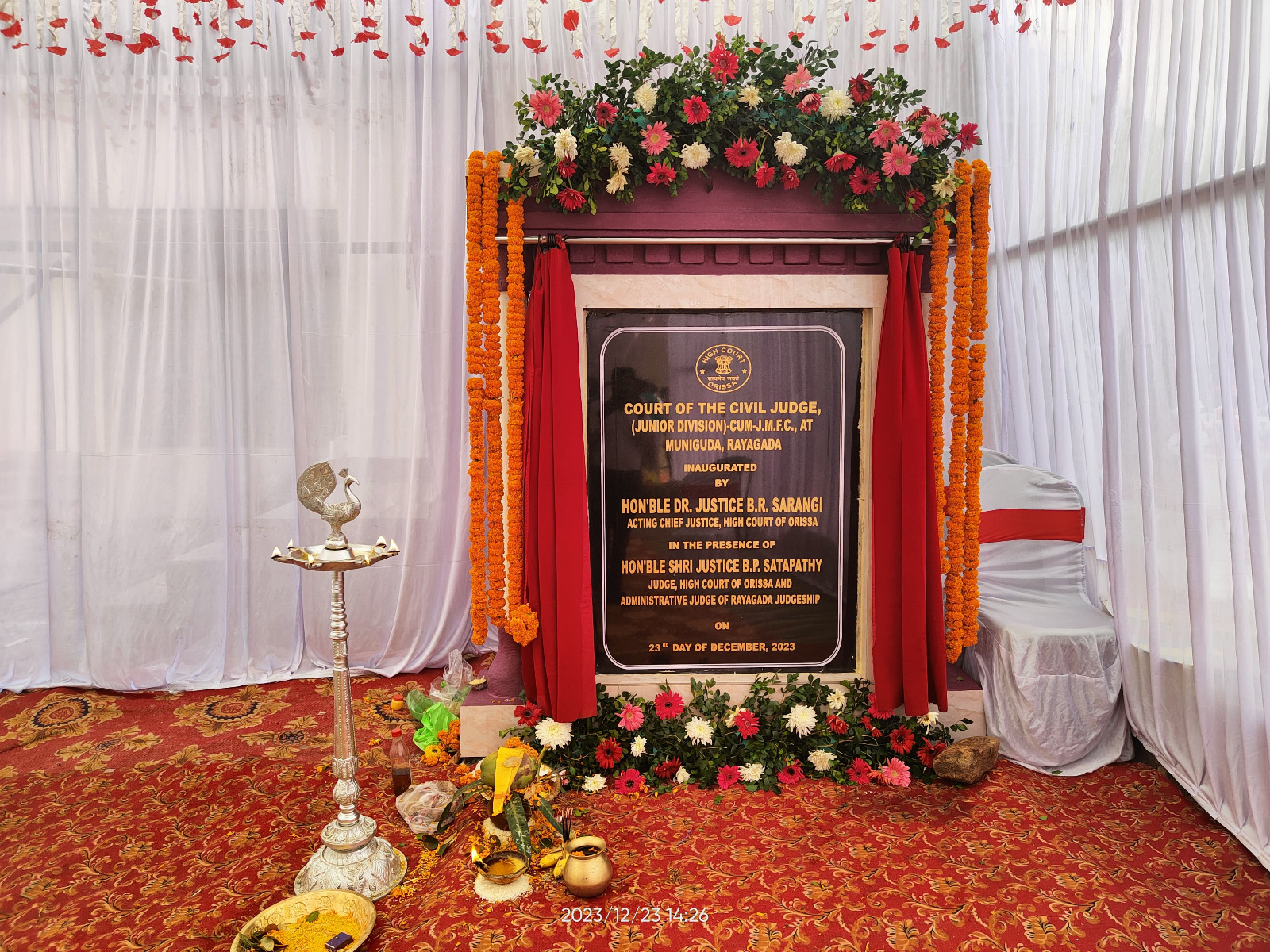 | 23.12.2023 - Court of the Civil Judge (Junior Division)-cum-J.M.F.C. at Muniguda, Rayagada inaugurated by Hon’ble Dr. Justice B.R. Sarangi, Acting Chief Justice, High Court of Orissa in presence of Hon’ble Shri Justice B.P. Satapathy, Judge, High Court of Orissa and Administrative Judge of Rayagada Judgeship |