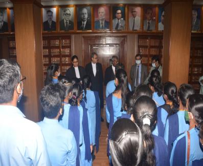 | In the morning of 14th November, 2021, twenty five children of 11th and 12th Standards from Ravenshaw Higher Secondary School and their teachers visited the High Court premises at Cuttack and took glimpses of the statues of Dr. B.R. Ambedkar, Utkal Gourav Madhusudan Das and Justice B.K. Ray, the first Chief Justice of the High Court of Orissa. The students were enthused to see the Chief Justice’s Courts and Chambers in the Heritage Building and the New Building of the Court as well as the photograph gallery of Former Chief Justices and Judges. While roaming around the corridors the students had lot of interesting queries about lives of Lawyers and Judges and about Court functioning and the Justice Delivery System which were answered by the lawyers Mr. Bibhu Prasad Tripathy, Mrs. Pami Rath and Mr. Saswat Acharya. Students visited the High Court Bar Association Hall where they interacted with the Office Bearers of the Association and the young Lawyers. They were told about eminent legal luminaries of the State having made contribution of national importance. Apart from the High Court the students also visited the Aain Seva Bhawan, the new building housing the office of Odisha State Legal Services Authority recently inaugurated by Justice N.V. Ramana, the Chief Justice of India, In Aain Seva Bhawan the students were explained how the Alternative Dispute Redressal (ADR) mechanism has catered to the need of poor litigants over the years. At Odisha Judicial Academy the students interacted with Judicial Officers and the Chief Justice of the High Court Dr S Muralidhar. The Chief Justice told them about the nobility of legal profession and the contribution of legal fraternity as a whole in nation building. He stressed on the ability to recognize injustice and the constitutional values to be nurtured through Judicial System. He encouraged the students to aspire towards becoming Lawyers and Judges and being instruments of dispensation of justice for the poor and downtrodden litigants seeking justice. |