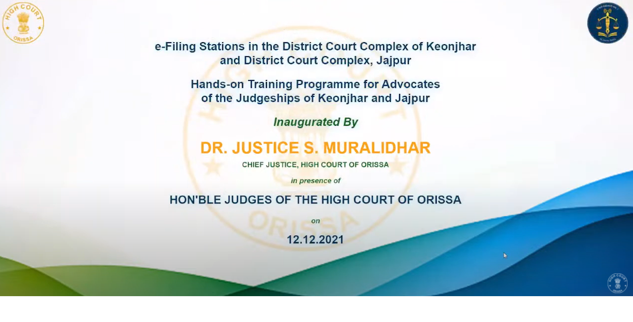 12.12.2021 - Inauguration of e-Filing Stations for Advocates, Hands-on Training Programme on e-Filing, e-Payment & other beneficial eservices for Advocates of the Judgeships of Keonjhar and Jajpur inaugurated by Dr. Justice S. Muralidhar, Chief Justice, High Court of Orissa on 12th December, 2021