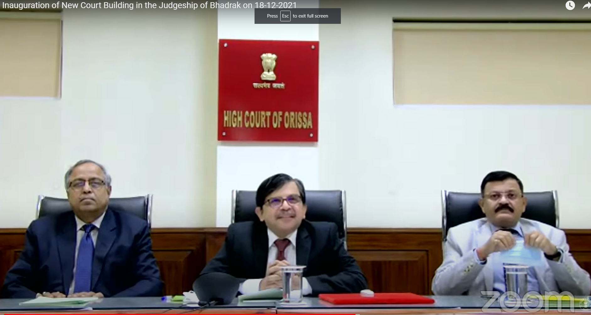 | 18.12.2021 - Inauguration of New District Court Building of Bhadrak by Dr. S. Muralidhar, Chief Justice, High Court of Orissa in presence of Hon'ble Dr. Justice B.R. Sarangi, Judge, High Court of Orissa and Chairman, Building Committee for Subordinate Courts and Hon'ble Mr. Justice D. Dash, Judge, High Court of Orissa and Administrative Judge for the District of Bhadrak. |
