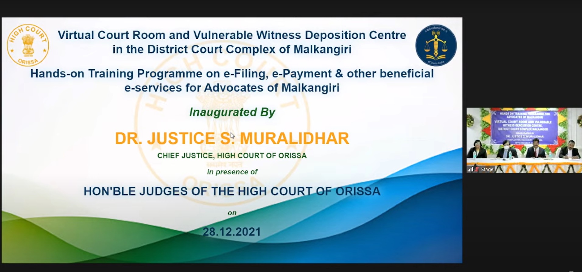 28.12.2021 - Inauguration of Virtual Court Room and Vulnerable Witness Deposition Centre at District Court Complex, Malkangiri & Hands-on Training Programme on e-Services for Advocates in Malkangiri on 28th December, 2021.