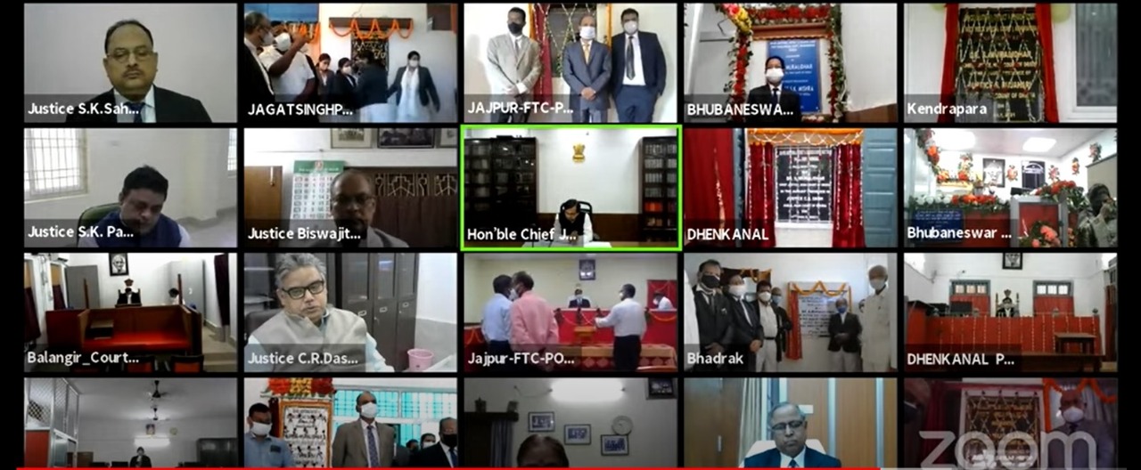 | 01.07.2021 - Dr. S. Muralidhar, Chief Justice, High Court of Orissa inaugurated (a) the 15 Fast Track Special Courts (FTSCS) dealing with cases under POCSO Act and Rape cases in the state in the judgeship of Cuttack / Balasore / Bhadrak / Bolangir / Dhenkanal / Ganjam / Jagatsinghpur / Jajpur / Kalahandi / Kendrapara / Khurda / Koraput / Kandhamal / Rayagada / Sambalpur; (b) the Court of Civil Judge (Jr. Divn.)-cum-JMFC at Ersama in the judgeship of Jagatsinghpur; (c) the Court of Civil Judge (Jr. Divn.)-cum-JMFC at Polasara in the judgeship of Ganjam; in the presence of Hon’ble Dr. Justice Sanju Panda, Hon’ble Shri Justice S.K. Mishra, Hon’ble Shri Justice C.R. Dash, Hon’ble Shri Justice Biswajit Mohanty, Hon’ble Dr. Justice B.R. Sarangi, Hon’ble Shri Justice S. Pujahari, Hon’ble Shri Justice Biswanath Rath, Hon’ble Shri Justice S.K. Sahoo, Hon’ble Shri Justice K.R. Mohapatra, Hon’ble Shri Justice B.P. Routray and Hon’ble Shri Justice S.K. Panigrahi, Judges of the High Court of Orissa through video conferencing. |