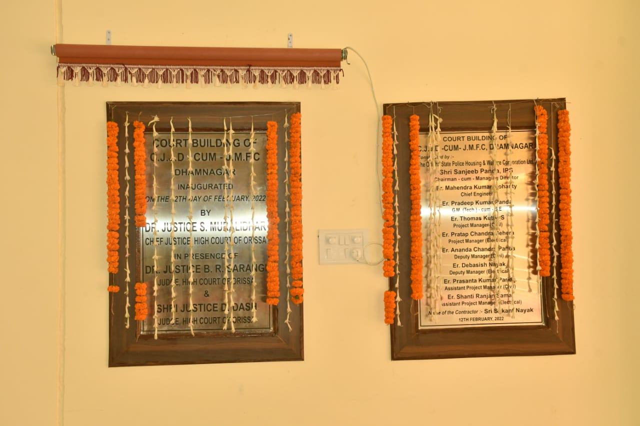 | 12.02.2022 - Inauguration of Civil Court Complex, Dhamnagar, Bhadrak by Dr. S. Muralidhar, Chief Justice, High Court of Orissa in presence of Hon'ble Dr. Justice B.R. Sarangi, Judge, High Court of Orissa and Hon'ble Mr. Justice D. Dash, Judge, High Court of Orissa and Administrative Judge for the District of Bhadrak |