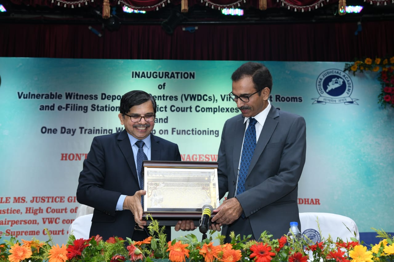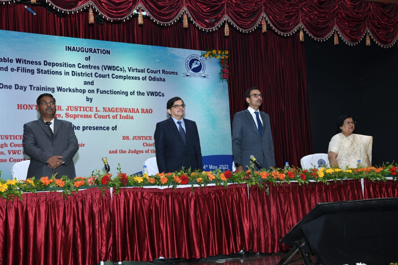 | 14.05.2022 - Hon'ble Mr. Justice L. Nageswara Rao, Judge, Supreme Court of India in presence of Dr. Justice S. Muralidhar, Chief Justice, & Hon’ble Judges of High Court of Orissa & Ms. Justice Gita Mittal, former Chief Justice of the Jammu and Kashmir High Court and Chairperson, Vulnerable Witness Committee inaugurated the Vulnerable Witness Deposition Centres and Virtual Courtrooms in District Court Complexes |