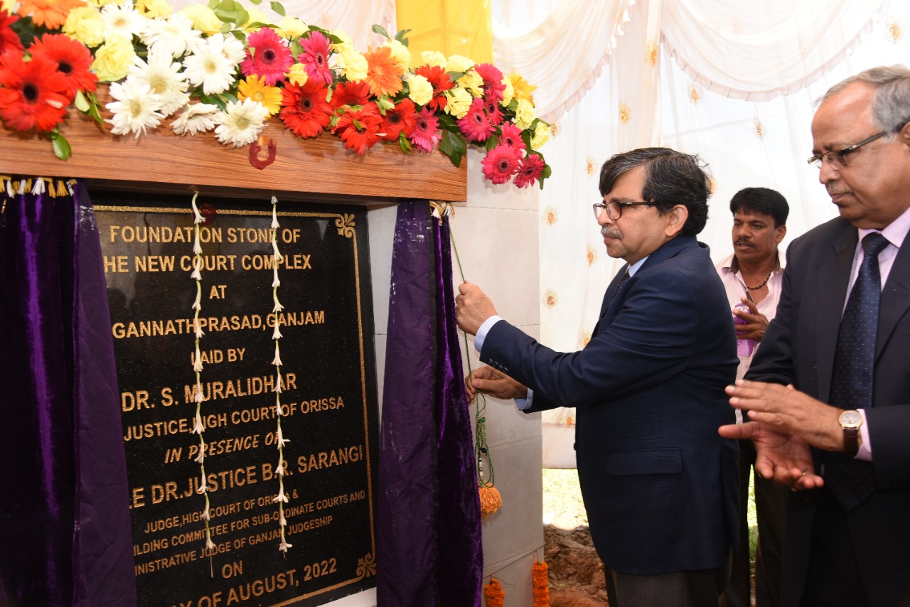 31.08.2022 - Foundation stone laying ceremony of the New Court Complex at Jagannathprasad, Ganjam by Dr. S. Muralidhar, Chief Justice, High Court of Orissa in presence of Dr. Justice B.R. Sarangi, Judge, High Court of Orissa and Administrative Judge of Ganjam Judgeship