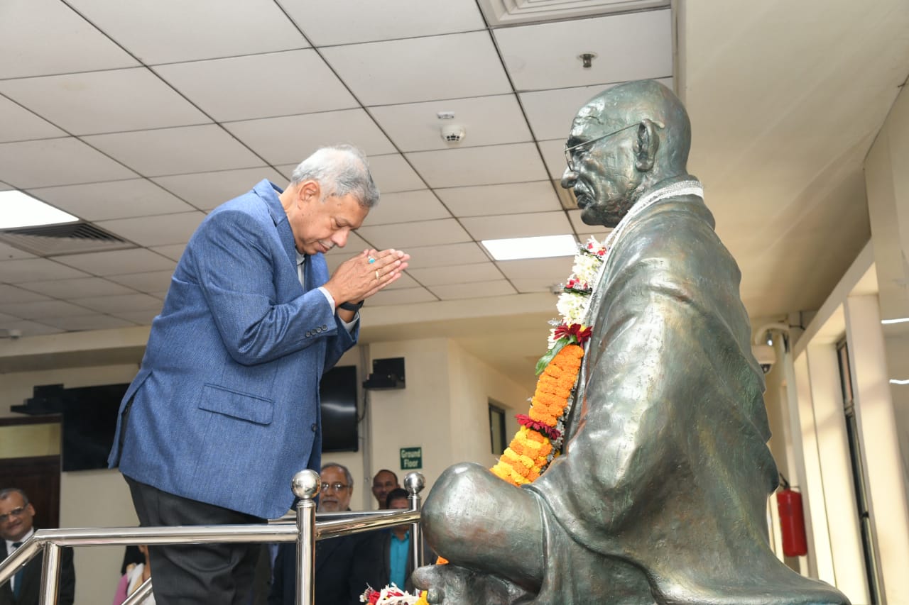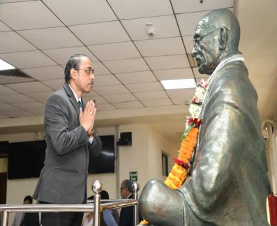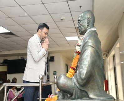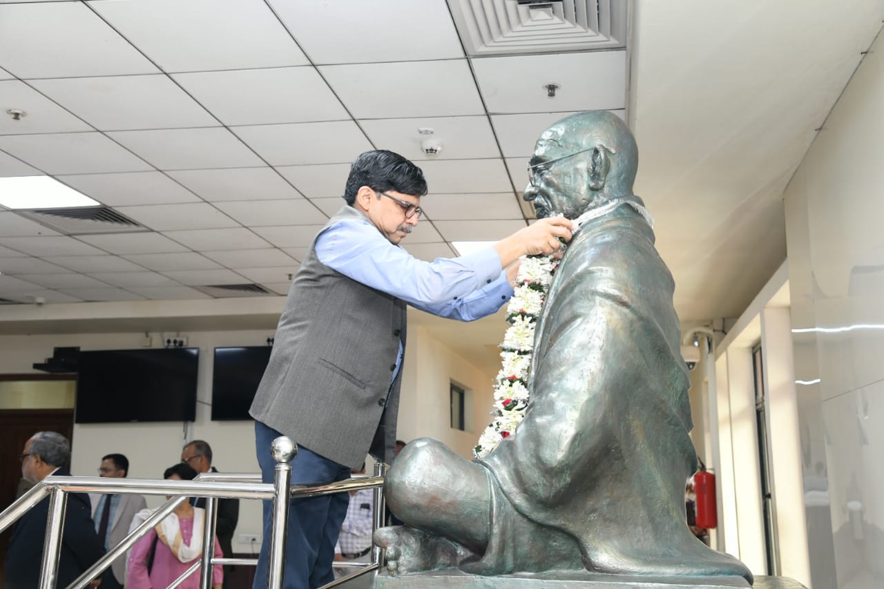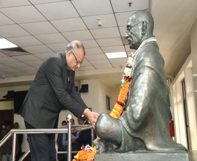 | 02.10.2022 - On the occasion, Dr. Justice S. Muralidhar, Chief Justice, High Court of Orissa and Dr. Justice B.R. Sarangi, Justice Savitri Ratho, Justice M.S. Sahoo, Justice R.K. Pattanaik, Justice M.S. Raman, Judges of the High Court of Orissa have offered floral tributes to the statue of Mahatma Gandhi at the Ground floor of the New Building of the Court. Other dignitaries such as Ashok Kumar Parija, Advocate General, Odisha; Dhananjaya Mund, Addl. Govt. Advocate; Kshirod Kumar Rout, Vice-President and Alok Prasad Nanda, Secretary, the High Court Bar Association, Cuttack along with the officers of the Registry and staff of the Court have also offered floral tributes to the statue of Mahatma Gandhi. |