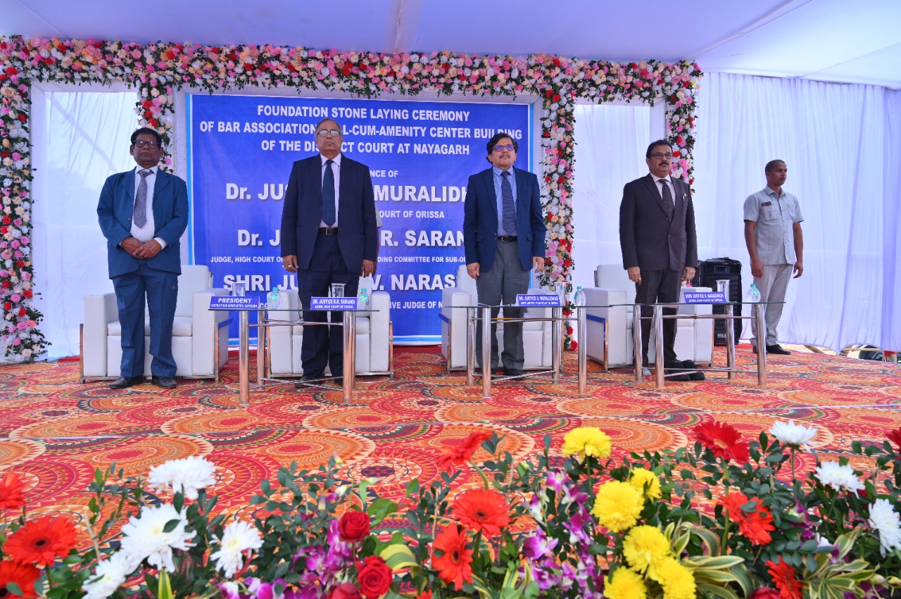 | 10.12.2022 - Foundation stone laying ceremony of Bar Association Hall-cum-Amenity Centre Building of the District Court at Nayagarh by Dr. Justice S. Muralidhar, Chief Justice of Orissa in presence of Dr. Justice B.R. Sarangi, Judge, High Court of Orissa and Chairman, Building Committee for Sub-ordinate Courts & Shri Justice V. Narasingh, Judge, High Court of Orissa and Administrative Judge of Nayagarh Judgeship |