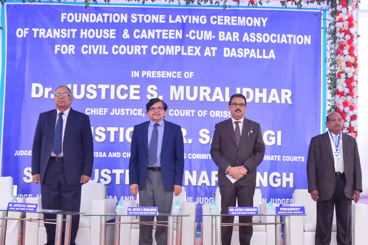 | 10.12.2022 - Foundation stone laying ceremony of Transit House and Canteen-cum-Bar Association for Civil Court Complex at Daspalla by Dr. Justice S. Muralidhar, Chief Justice, High Court of Orissa in presence of Dr. Justice B.R. Sarangi, Judge, High Court of Orissa and Chairman, Building Committee for Sub-ordinate Courts & Shri Justice V. Narasingh, Judge, High Court of Orissa and Administrative Judge of Nayagarh Judgeship on 10th December, 2022 |