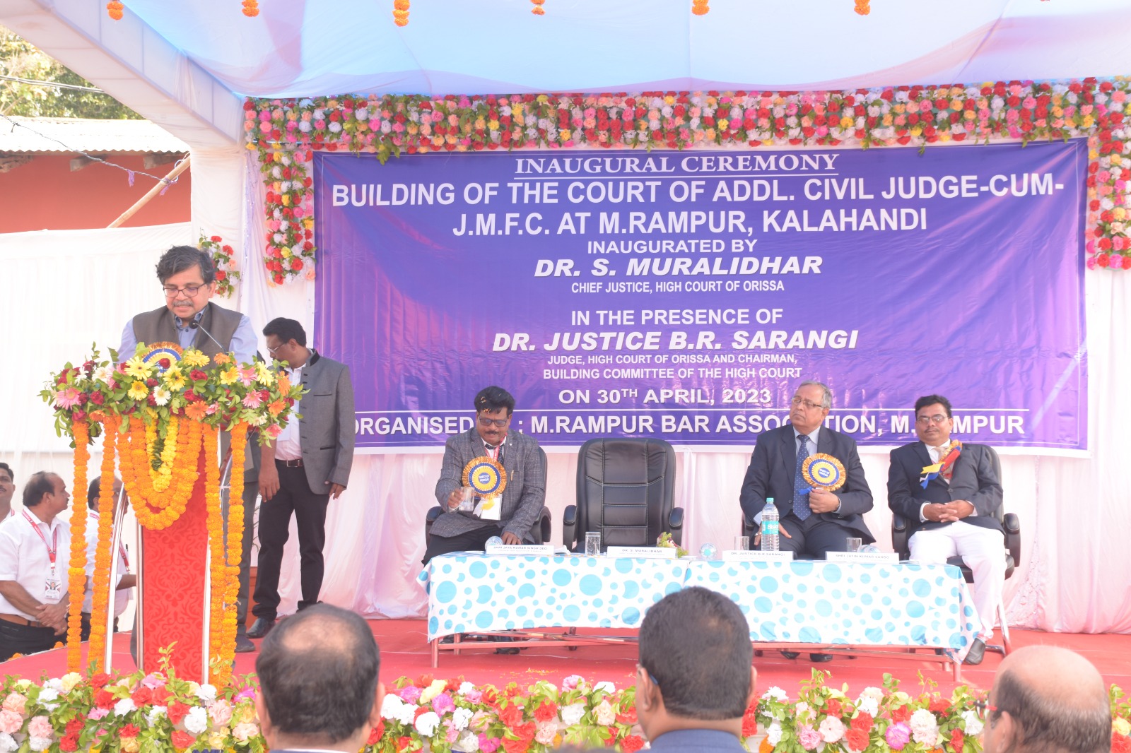 | 30.04.2023 - On 30th April, 2023, Dr. Justice S. Muralidhar, Chief Justice, High Court of Orissa inaugurated the building of the Court of Addl. Civil Judge-cum-J.M.F.C. at M.Rampur in the Judgeship of Kalahandi in the presence of Hon'ble Dr. Justice B.R. Sarangi, Judge, High Court of Orissa & Chairman, Building Committee of the High Court |