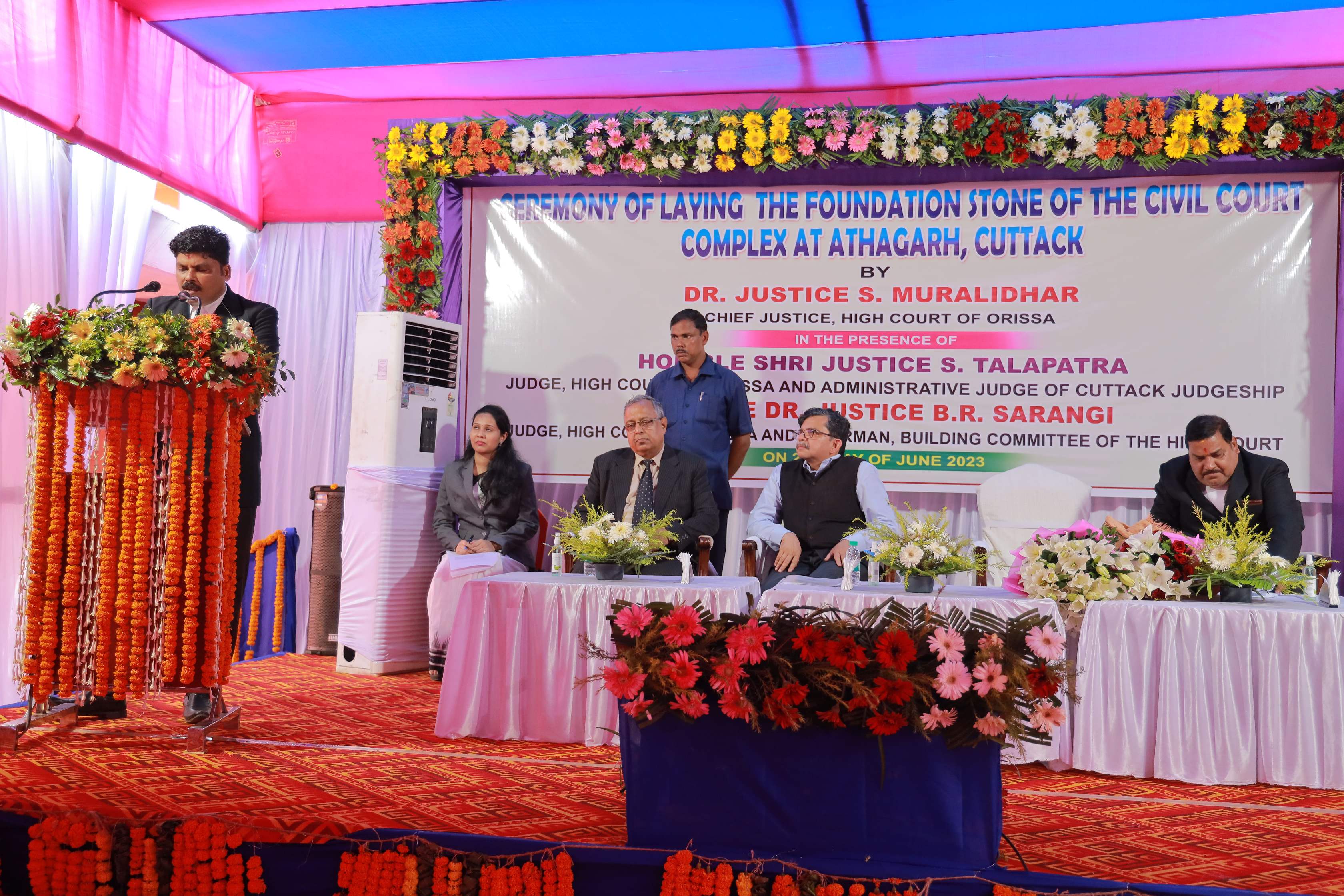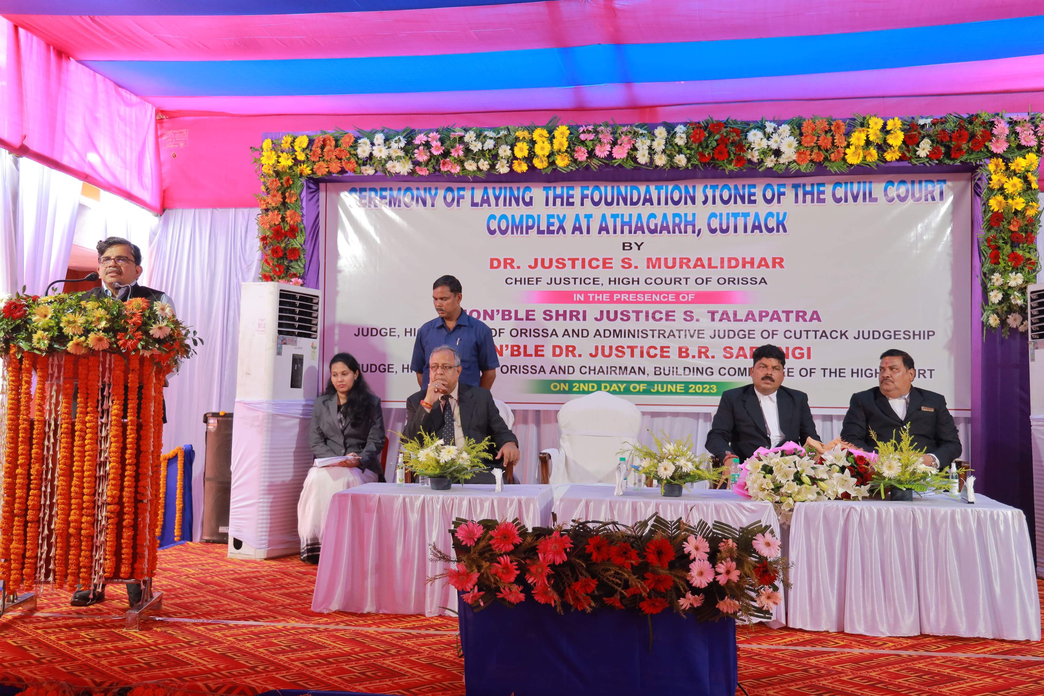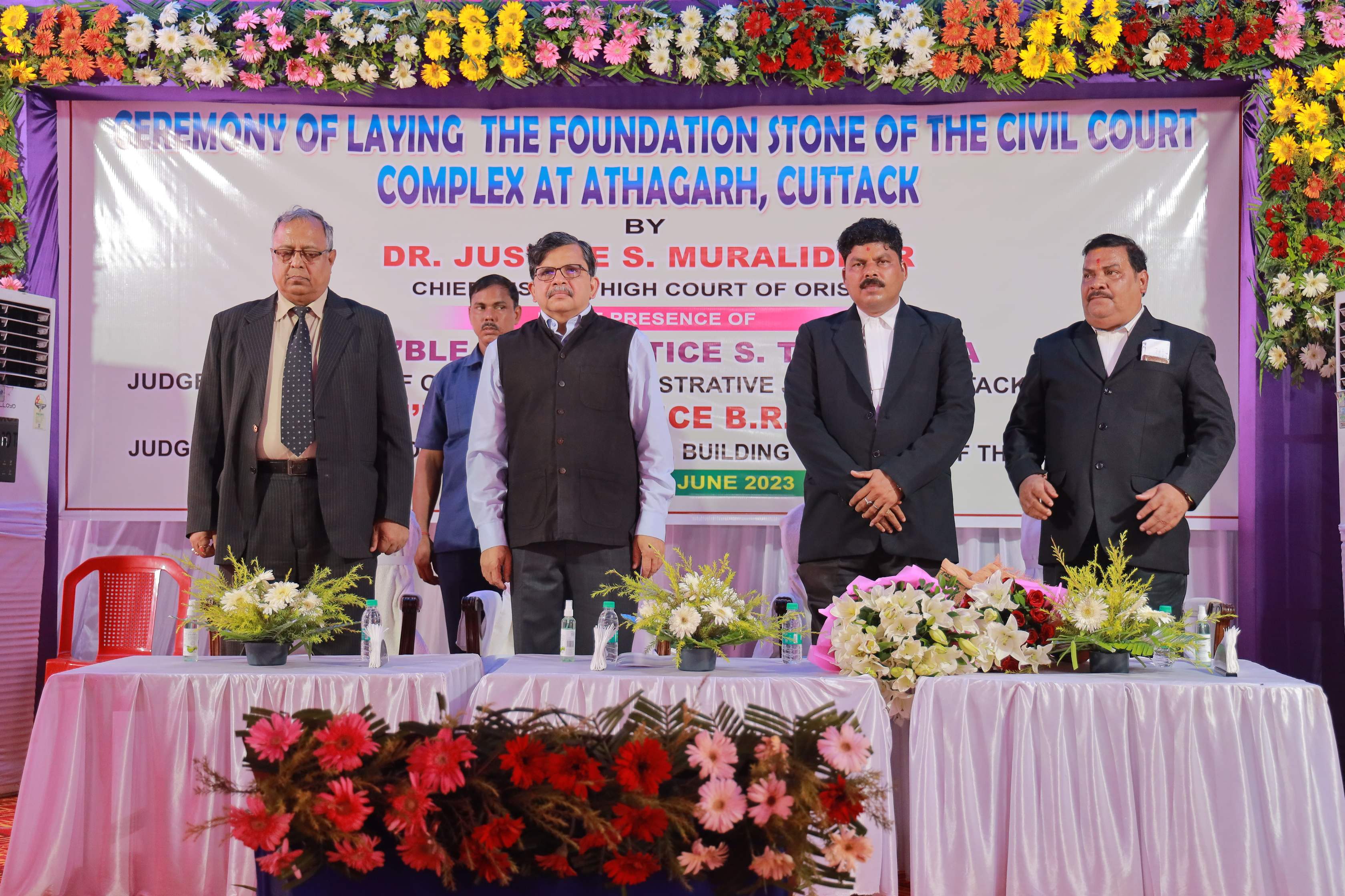 | 02.06.2023 - Foundation Stone Laying Ceremony of the Civil Court Complex at Athagarh in the Judgeship Cuttack by Dr. Justice S. Muralidhar, Chief Justice, High Court of Orissa in the presence of Hon'ble Shri Justice S. Talapatra, Judge, High Court of Orissa & Administrative Judge for Cuttack Judgeship and Hon'ble Dr. Justice B.R. Sarangi, Judge, High Court of Orissa & Chairman, Building Committee of the High Court |