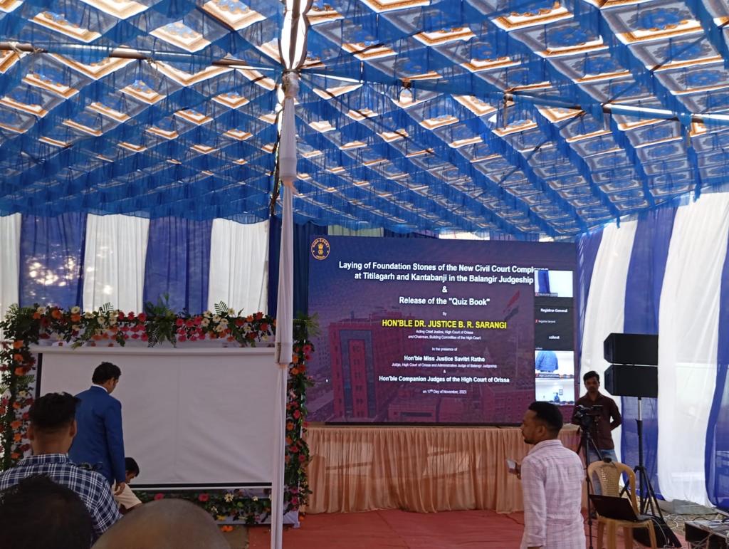 17.11.2023 - Laying of foundation stones of the New Civil Court Complexes at Titilagarh and Kantabanji in the Balangir Judgeship & Release of the Quiz Book by Hon’ble Dr. Justice B.R. Sarangi, Acting Chief Justice, High Court of Orissa and Chairman, Building Committee of the High Court in presence of Hon'ble Miss Justice Savitri Ratho, Judge, High Court of Orissa and Administrative Judge, Balangir Judgeship and the Hon’ble Companion Judges of the High Court of Orissa in the VC Hall, 2nd Floor through virtual mode